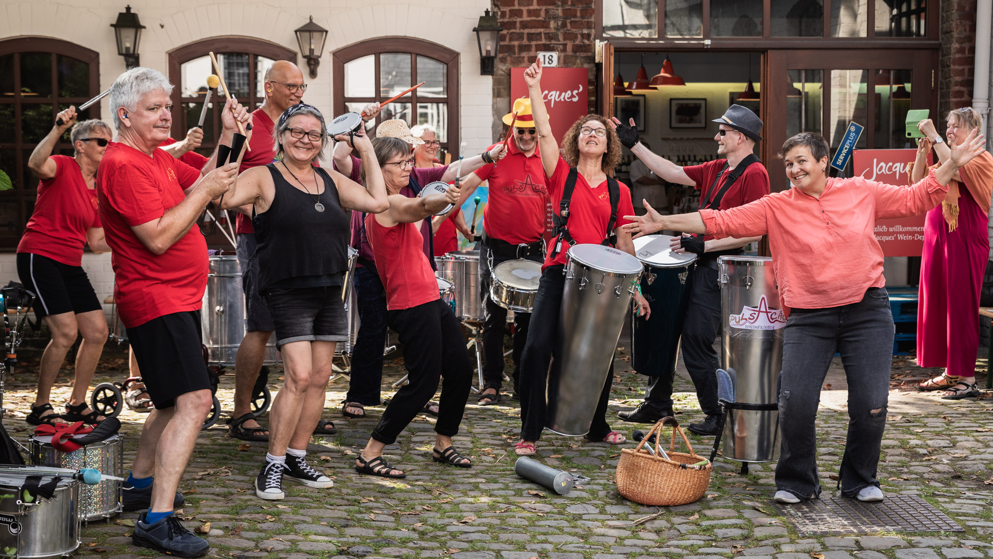 PressematerialText zu Pulsação:Als Dagmar Jungbluth vor 22 Jahren einen Samba Einsteigerkurs - zunächst nur für Kinder - in Wuppertal anbot, konnte sie nicht ahnen, dass daraus ein Langzeitprojekt werden würde. Nach und nach spielten mehr Eltern als Kinder mit; Freund:innen und Kolleg:innen gesellten sich hinzu und es entstand nach einer Phase der Namenssuche die Sambagruppe "Pulsação" (brasilianisch: Pulsieren). So wie der Name ist auch die Musik: sie nimmt Spieler:innen und Zuhörer:innen unweigerlich mit auf einen akustischen Kurzurlaub nach Brasilien. Wir trommeln gerne bei Marathons, Stadtfesten und auch bei Geburtstagen und Hochzeiten. Ruft uns an. 😊